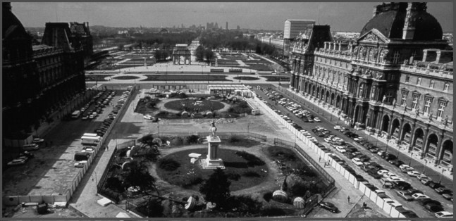 1985 – Les travaux commencent au milieu du Carrousel du Louvre. La cour Napoléon se transforme en un gigantesque chantier malgré une vive polémique.