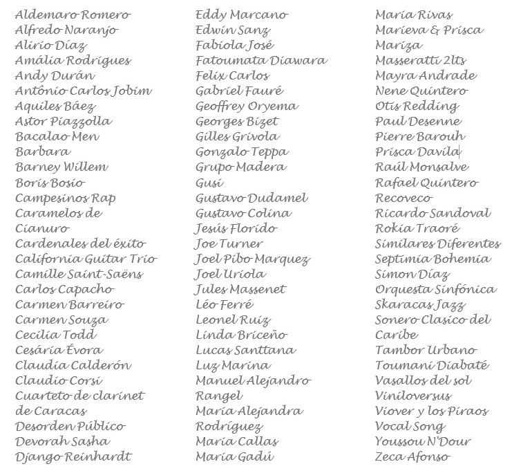 Liste non exhaustive des artistes programmés depuis quinze années