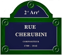 Cette rue faisait précédemment partie de la rue Chabanais. En raison de l’ancien emplacement de l’Opéra, une ordonnance du 5 août 1844 lui donne le nom du compositeur italien Luigi Cherubini.