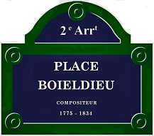 Cette place fut ouverte en 1780 sous le nom de place de la Comédie-Italienne, puis s’appela, de 1816 à 1852 place des Italiens. Le elle reçut le nom du compositeur français François-Adrien Boieldieu.